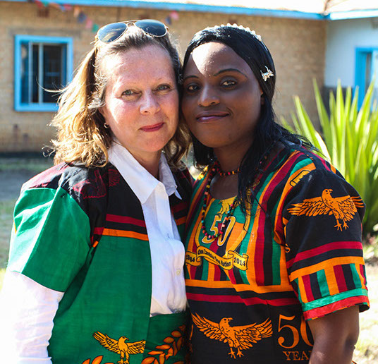 Lindsey Hand, a Gonzaga-in-Zambezi student, and Mama Josephine prepare for the literacy march