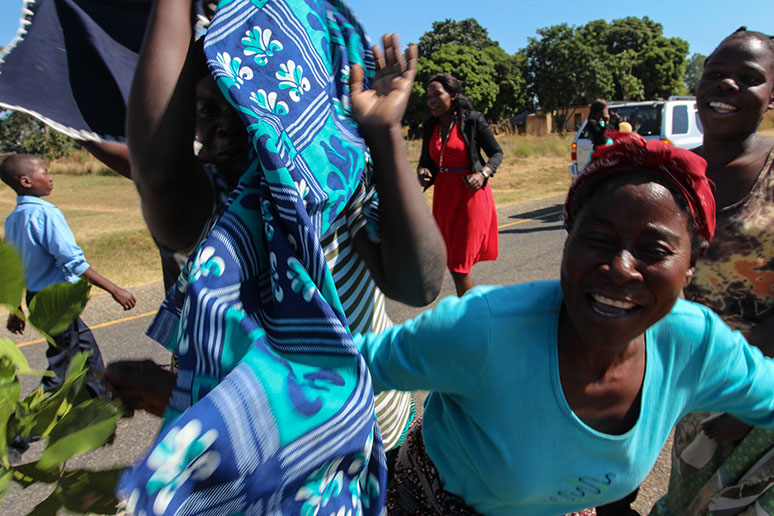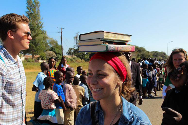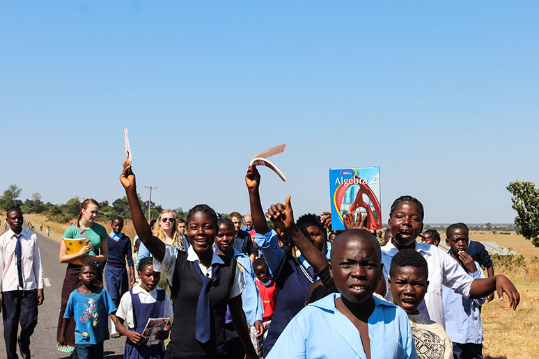 Zambia Gold intern Katie Polacheck participates in the literacy march Zambian style