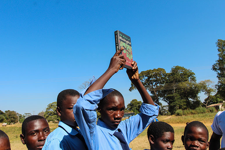 Zambia Gold intern Katie Polacheck participates in the literacy march Zambian style